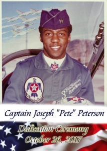 Peterson graduated from Tuskegee Public School in 1967. Yet it was the Tuskegee Institute High School Class of 1964 that initiated the effort to honor him. To advance the project, members of the Class of ’64 worked with the National Park Service, state, county and city officials, relatives of Captain Peterson and friends who knew him during his time in Tuskegee.